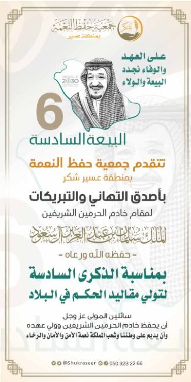 خادم الحرمين الشريفين نجدد لكم الولاء والوفاء في ذكرى البيعة السادسة .