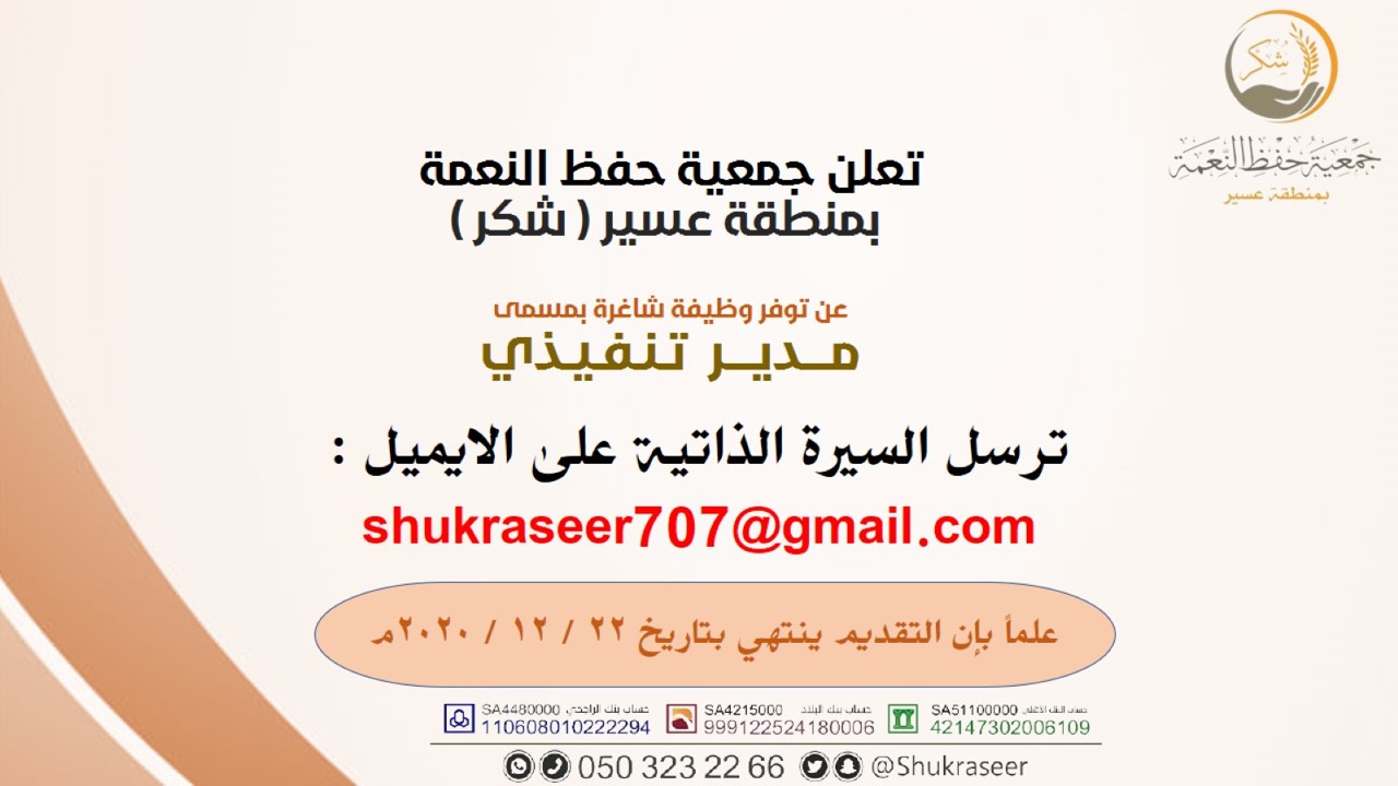 تعلن جمعية حفظ النعمة بعسير(شكر)